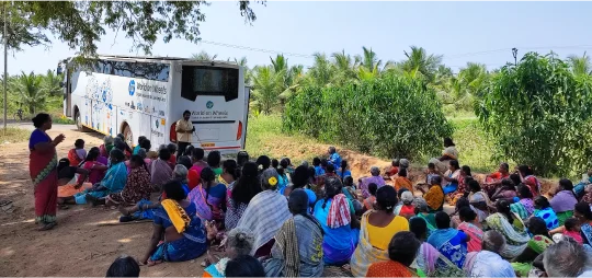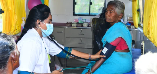 The Mobile Healthcare Units (MHU) was staffed with a doctor, pharmacist, and social worker. By offering MHUs in partnership with local NGOs, we were able to make an impact and offer villages direct access to healthcare. These units provided consultations, medicines, and basic healthcare solutions to the rural population.